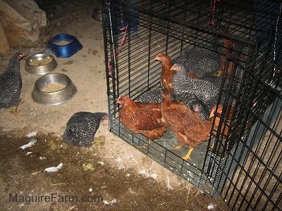 Barred Rock (Black) and New Hampshire Red Chickens checking out their new surroundings