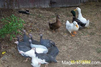 The Guineas were very loud around the ducks but soon got used to their presence and quieted down.